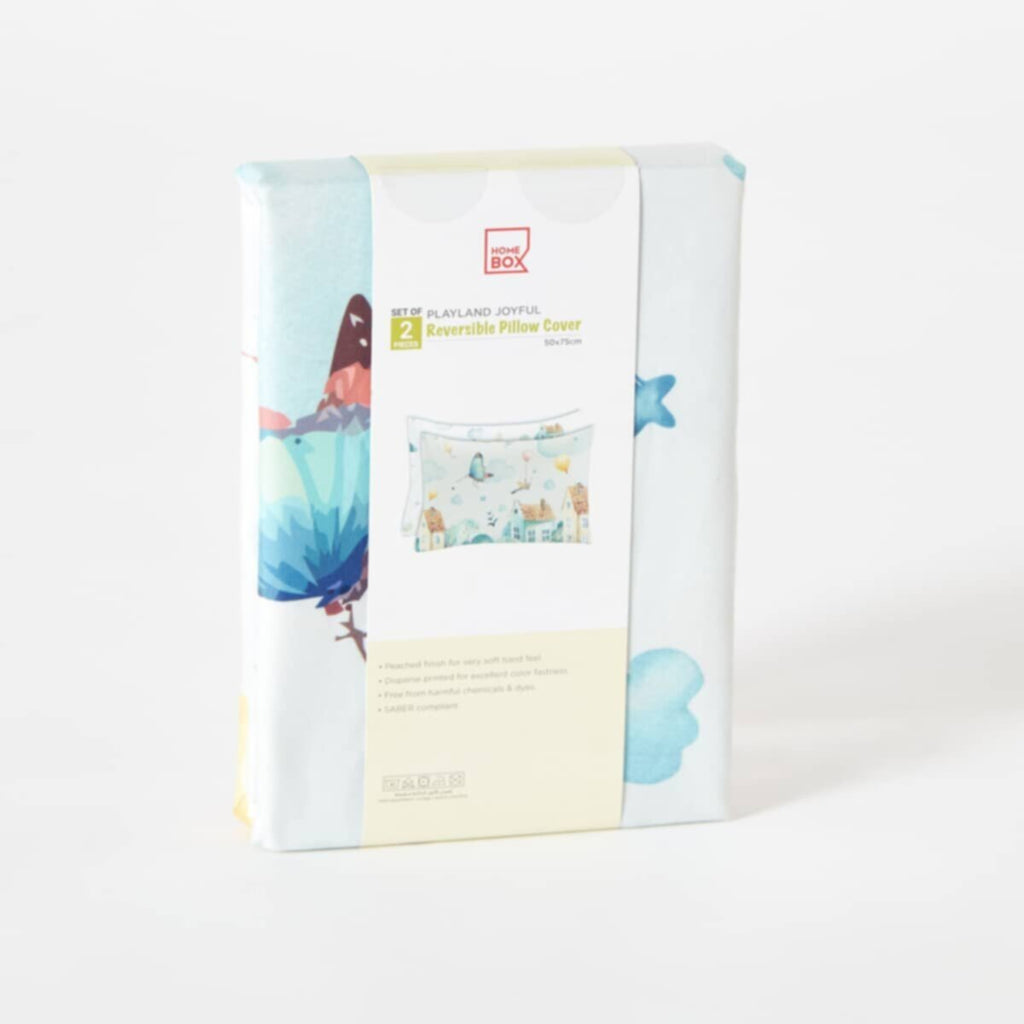 A cheerful addition to your kid's bedroom, this set of two pillow covers with a peached finish is crafted from breathable microfibre lending a soft hand feel and ensuring comfort and a good night's sleep. It features a dispersed print for excellent colour fastness. Also, the covers are free from harmful chemicals and dyes, making them SABER compliant.The product images have props used for illustrative purposes.