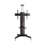 Zenan Tv stand comes with Black Silver, the universal design that enables mounting of TVs from 42 to 90 inches from all leading brands up to 90kg weight capacity with adjustable height, glass shelf tv stand with castor wheels which in best in class.