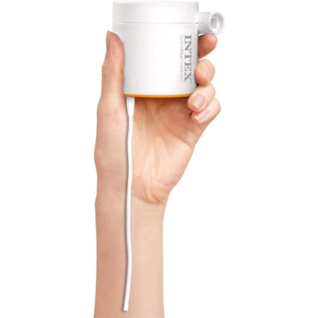 A sleek mini air pump easily powered with a variety of USB compatible power sources perfect for inflating pool floats and camping mats on the go.
