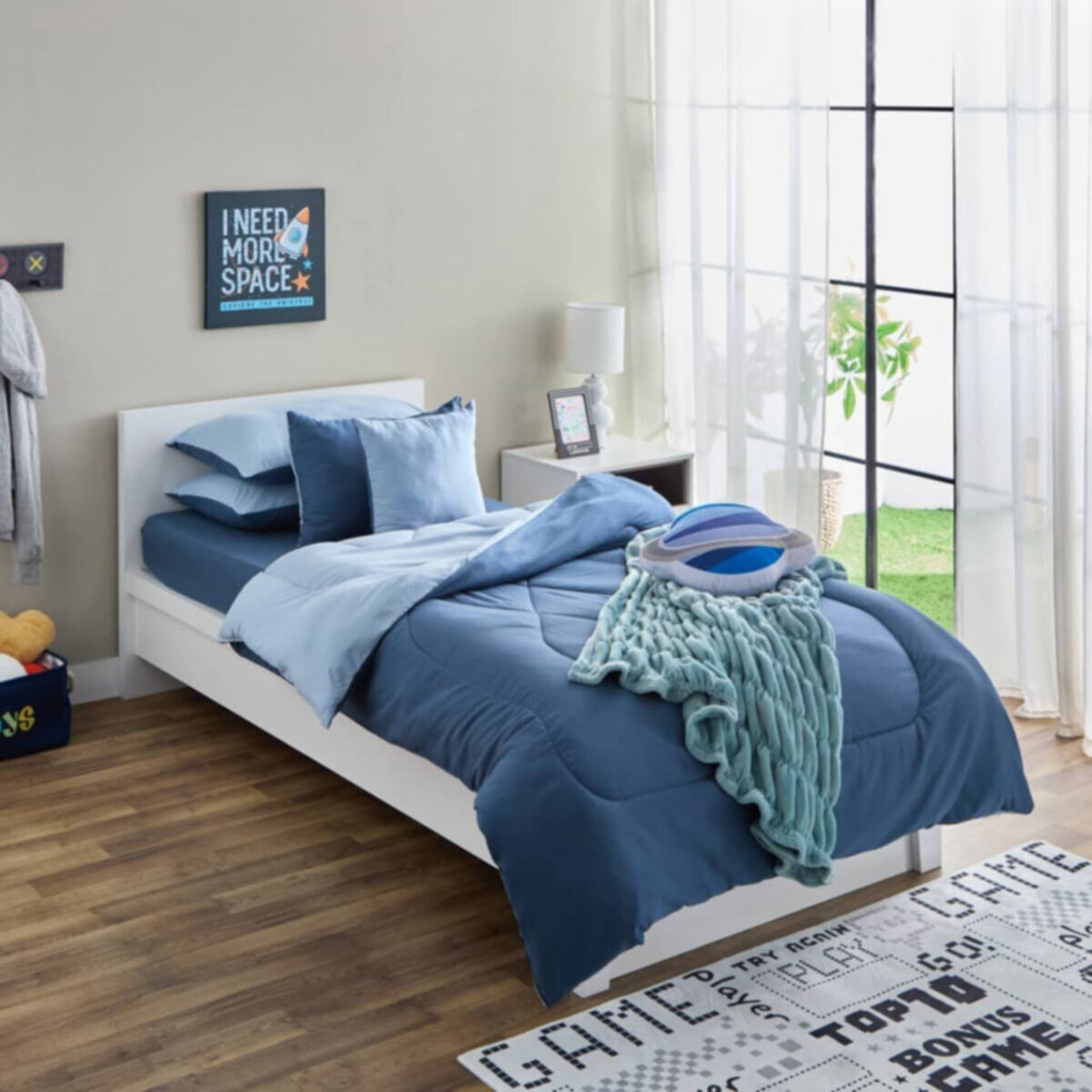 Add a pop of colour and comfort to your kid's room with the reversible cushion. Crafted from colour fast microfiber, this cushion is both durable and inviting. Its reversible design offers two trendy looks in one.The product images have props used for illustrative purposes.