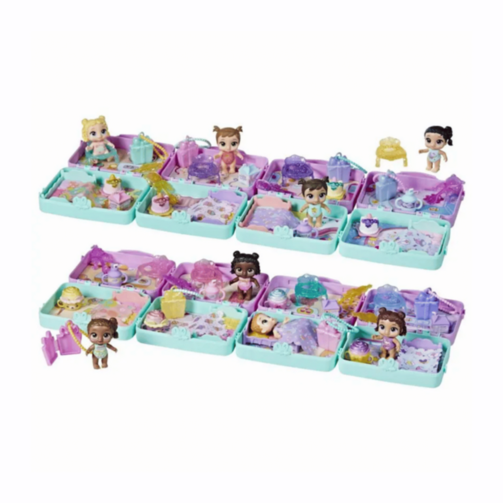 Discover an exciting Foodie Cuties world with 10 fun surprises inside! In Sweets Series 1 of Baby Alive Foodie Cuties, there are 4 themes, 8 playscapes, 8 babies and lots of accessories! (Each sold separately.) Kids won t know which baby and accessories they ll get! Inside the lunchbox style case, they ll find a food themed box with a 3 inch surprise doll, themed bed and blankie. Reveal more pretend doll accessories within the case, play food pouch and tissue paper, like a highchair, snack, drink, utensil, play accessory and stickers. The interchangeable plastic cases snap together to create a Foodie Cuties world - plus, they act as a playset and portable carrying case to take baby on the-go. This surprise toy comes in a recyclable, paper based package which is plastic free except for tape and glue. Foodie Cuties playsets make a great Baby Alive doll toy for kids ages 3 and up and a fun gift for birthdays and holidays. Baby Alive and all related properties are trademarks of Hasbro.
