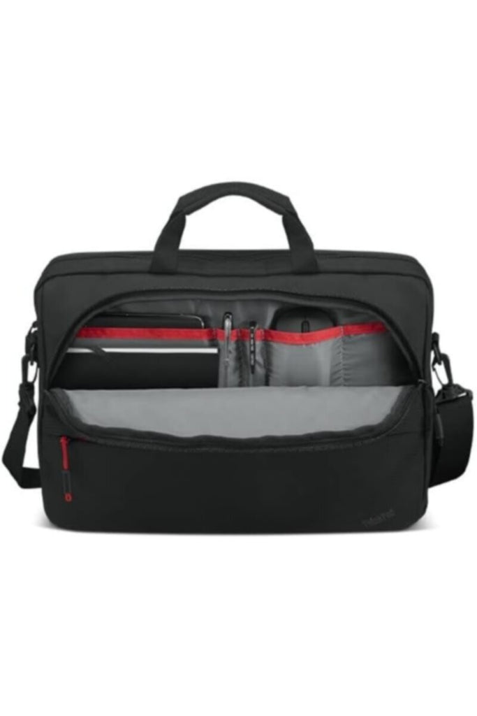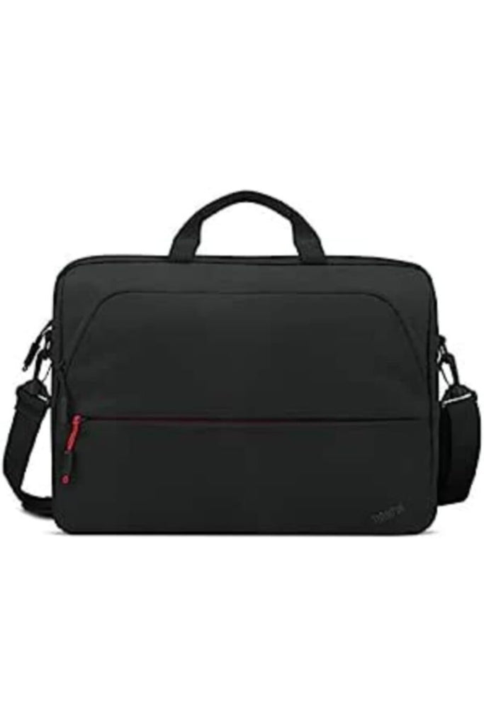 | Outside Fabric Material | Polyester, RPET The ThinkPad Essential 16 Inch Topload (Eco) comes with all the perks you d expect from a well designed toploader case. Pack and unpack on the fly. And move from office to cafe and back without a hitch thanks to the padded, organized interior storage, easy grip zippers, adjustable shoulder strap, and 16 inch notebook compartment. Get it all for a great price, and guilt free too. • Two main compartments, including a dedicated padded PC pocket, designed to fit Lenovo ThinkPad laptops up to 16 • Two additional front zip pockets for quick accessory access • Removable, adjustable shoulder strap for added comfort while carrying • Convenient luggage strap on back panel for travel and commuting • Easy grip zippers for easy packing and unpacking • Classic black nylon exterior, grey interior lining, with splashes of classic red accents • Each bag contains the equivalent of at least two recycled plastic bottles |
