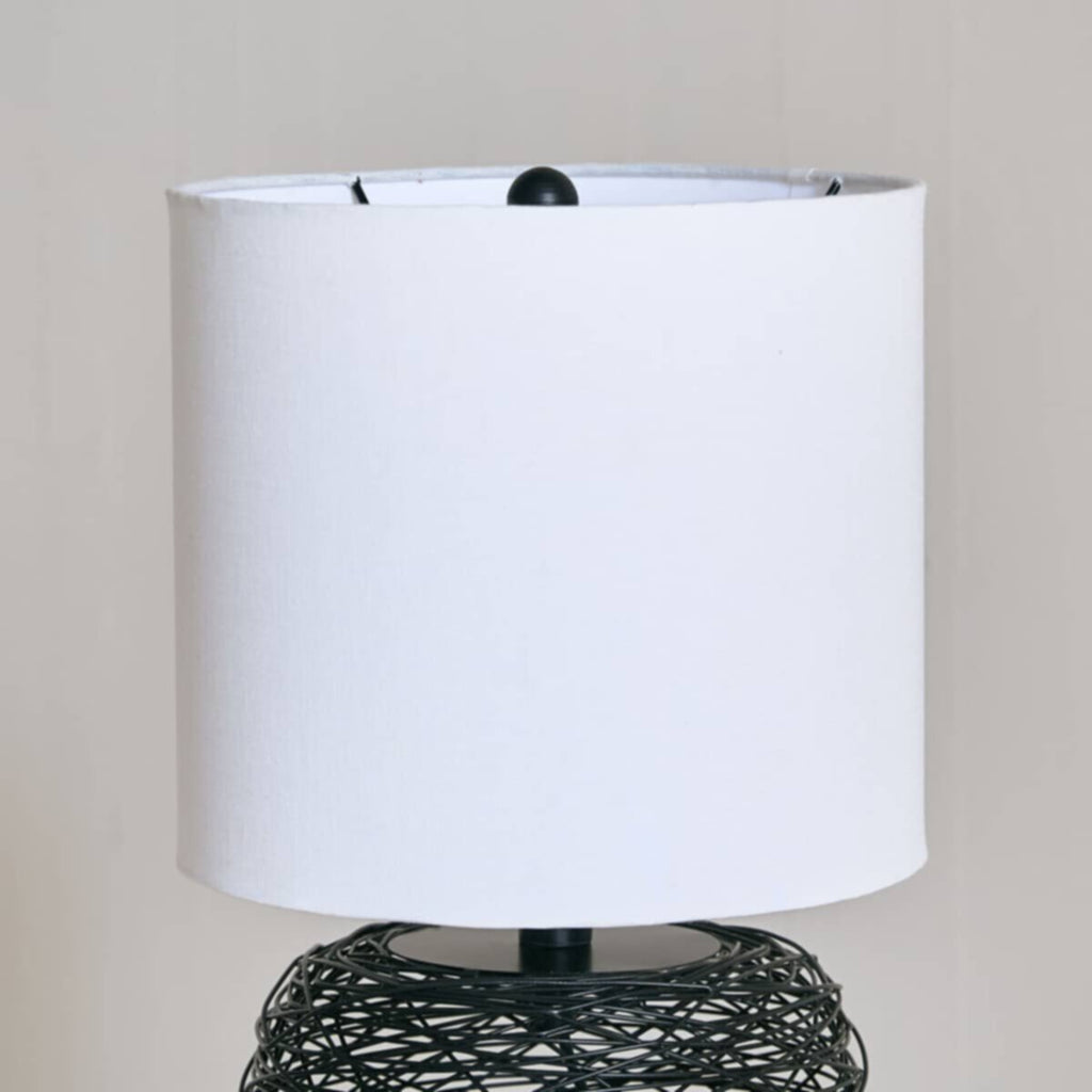 This table lamp has a modern design that will add a touch of elegance to any room. It features a superior finish and a fabric shade that diffuses light beautifully. This electric powered lamp is perfect for placing on a side table or desk to provide warm and inviting illumination. The metal wired base gives sturdiness and an artistic flair. It has hassle free maintenance.The product images have props used for illustrative purposes.Product Colour may vary slightly due to photographic lighting sources or your monitor/screen settings.