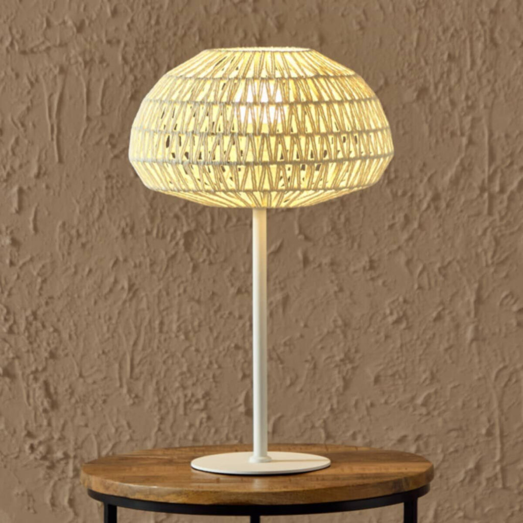 With its sleek metal design and paper rope shade, this table lamp adds a touch of modern elegance to any living space. The lamp provides ample lighting for your room while the shade ensures a wide distribution of light, making it perfect for living rooms, bedrooms, and dining rooms.The product images have props used for illustrative purposes.