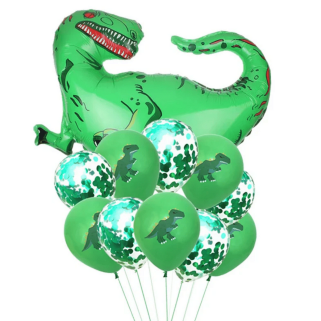 â—† 68 pcs Dinosaur theme Birthday party Decoration 2 set banner ,12 pcs leaves,5 pcs green balloons, 10 pcs confetti balloons, 10pcs colored balloons, 5 pcs pom pom, 24 pcs cupcake wrappers and toppers