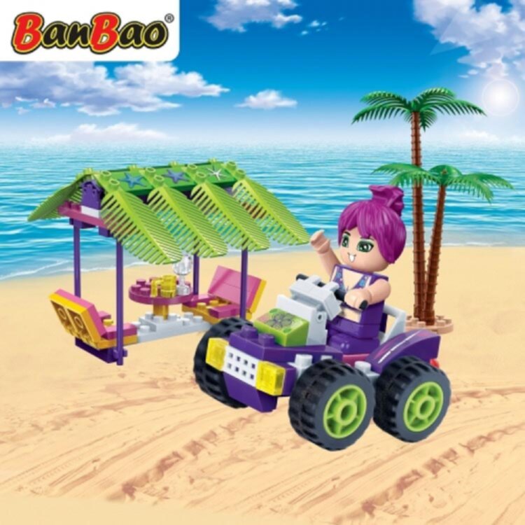 The weather is lovely today. Together with your friends you go out. You are walking on the promenade by the beach and get in the Tuk Tuk. Oh wait look a beautiful ice cream truck. Stop the Tuk Tuk your call .. You get off to enjoy a delicious ice cream. Build and enjoy the BanBao Trendy beach toy line. Hours of building and fun. Toys has never been this fun.
