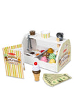 'I scream. You scream. We all scream for ice cream!' Who doesn t love a scoop or two of the sweet stuff? The Melissa & Doug Wooden Scoop & Serve Ice Cream Counter lets kids serve up yummy 'treats,' made to order! The 20 piece set features a reusable menu card, eight ice cream scoops, six toppings, two cones, cup, scooper, tongs, wooden spoon, and six bills. Lift, stack, and release the scoops onto the cones. This ice cream play set is great for imaginative playtime using your favorite dessert!