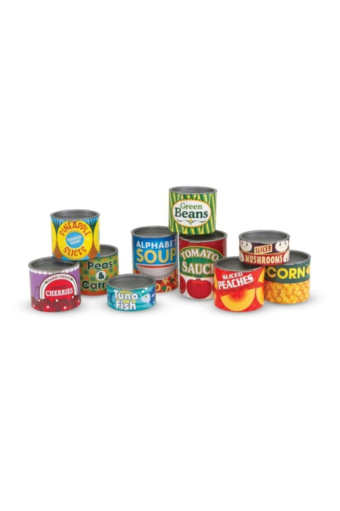 â—† PLAY-FOOD CANS THAT OPEN AND CLOSE: The Melissa & Doug Let’s Play House! Grocery Cans is a pretend play set that includes 10 cans with removable lids in a variety of sizes and designs.