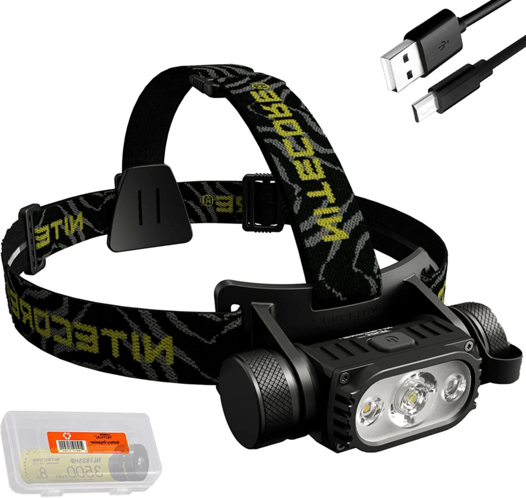 • Nitecore HC65 V2 Headlamp, USB C Charging Cable, Headband, Bracket, and Lumentac Organizer.