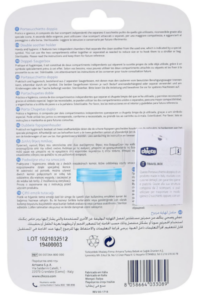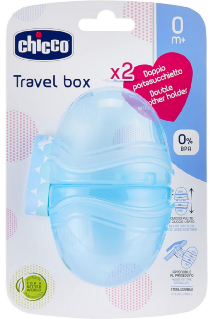 This soother holder from chicco is designed to ensure hygiene and practicality. it is composed of two compartments that can hold two soothers with a single stroke opener. can also be attached to any stroller.