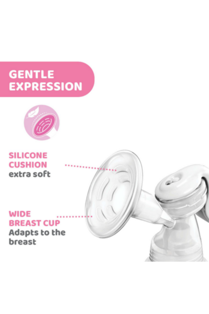 Chicco Manual Breast Pump allows mothers to express their precious milk in an effective and gentle way due to Chicco System. The comfort is guaranteed by the ergonomic handle and gentleness by soft silicone cover cup which fits all breast sizes. The package comes with the teat of Step Up Line, which allows to feed in a natural way, encouraging breast and bottle feeding.