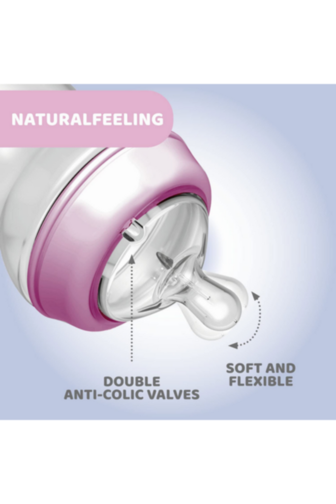 Natural Feeling Fast Flow Bottle 6m+ Pink 330ml is designed to make the transition between breastfeeding and bottle feeding as smooth as possible for both you and your baby. With its innovative design, this bottle closely replicates a baby's natural feeding experience by mimicking the mother's breast. So, this makes it an ideal choice for mixed feeding, offering a seamless switch between breast and bottle. The bottle has an ergonomic design with a wide opening
