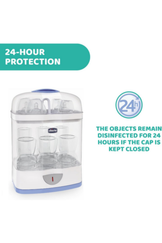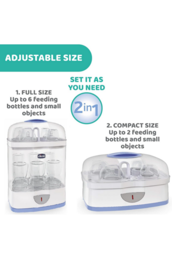 The immune system of newborn babies is still developing during the early months of birth. The simple practices of washing the baby products may not remove all the germs (bacteria, fungi etc.) and may prove harmful for your baby. Chicco 2 in-1 sterilizer eliminates 99.9% of commonly found household germs naturally with the help of steam.