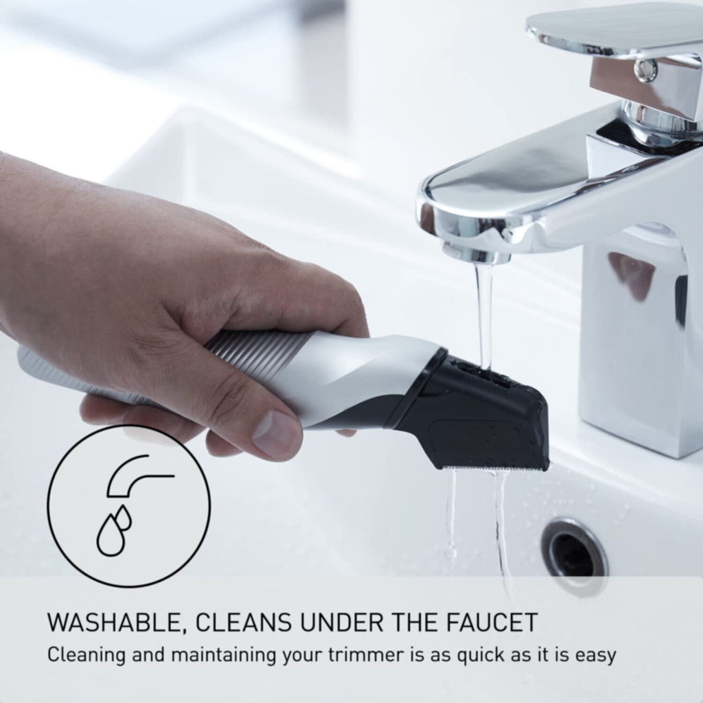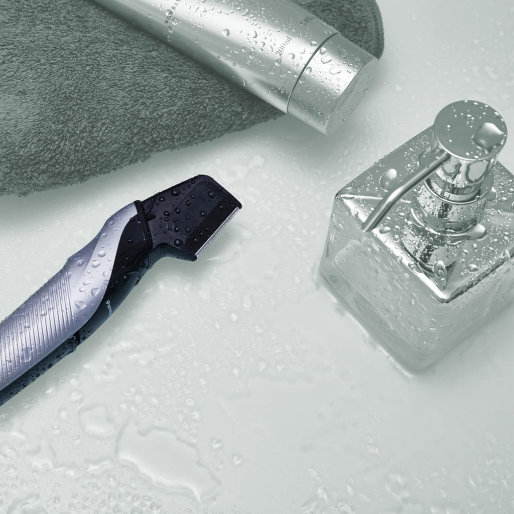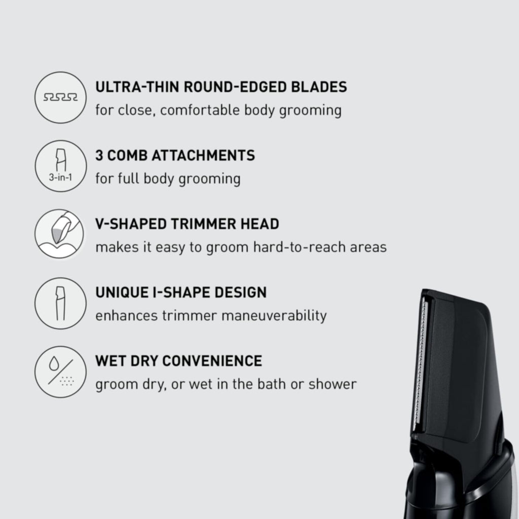 Groom hair everywhere with the new Panasonic body trimmer tool designed for hard to reach areas. You can enjoy gentle styling and grooming with a protective blade that shaves to 0.1mm, and with wet/dry features you can even groom without mess!!