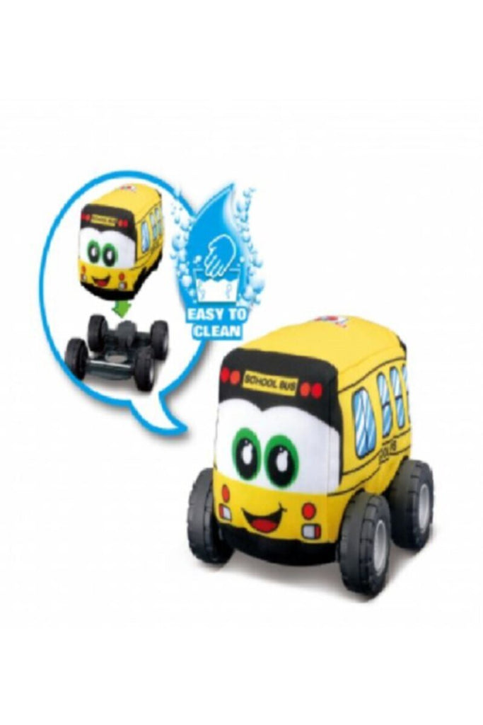 • The "My 1st Softcar Schoolbus" is something very special. The body of the car is made of a soft plush material. A velcro system makes it easy to remove the plush body from the chassis for easy cleaning. In addition, the yellow school bus has an built in pull back motor. The toy bus is suitable for children aged 12 months and over and playfully promotes imagination and gross motor skills.