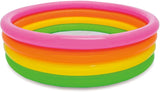 The Intex Sunset Glow Kiddie Pool is perfect for the kids who like to go underwater. Designed with 3 bright, colorful rings and a comfy inflatable floor, it sets up easily in the backyard for loads of splash filled fun.