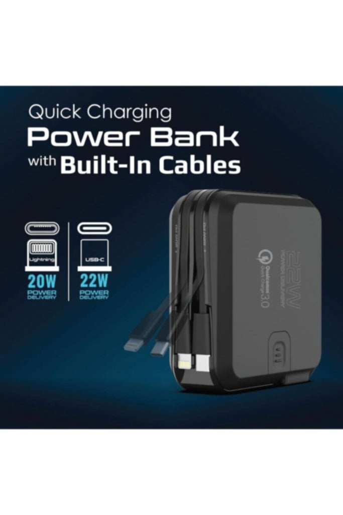 Forget the bulk of carrying extra cables as PowerPack-PD20+ features USB-C and Lightning Connector cables and the dual charging options lets you charge the power bank quickly through the AC socket or USB-C input port.
