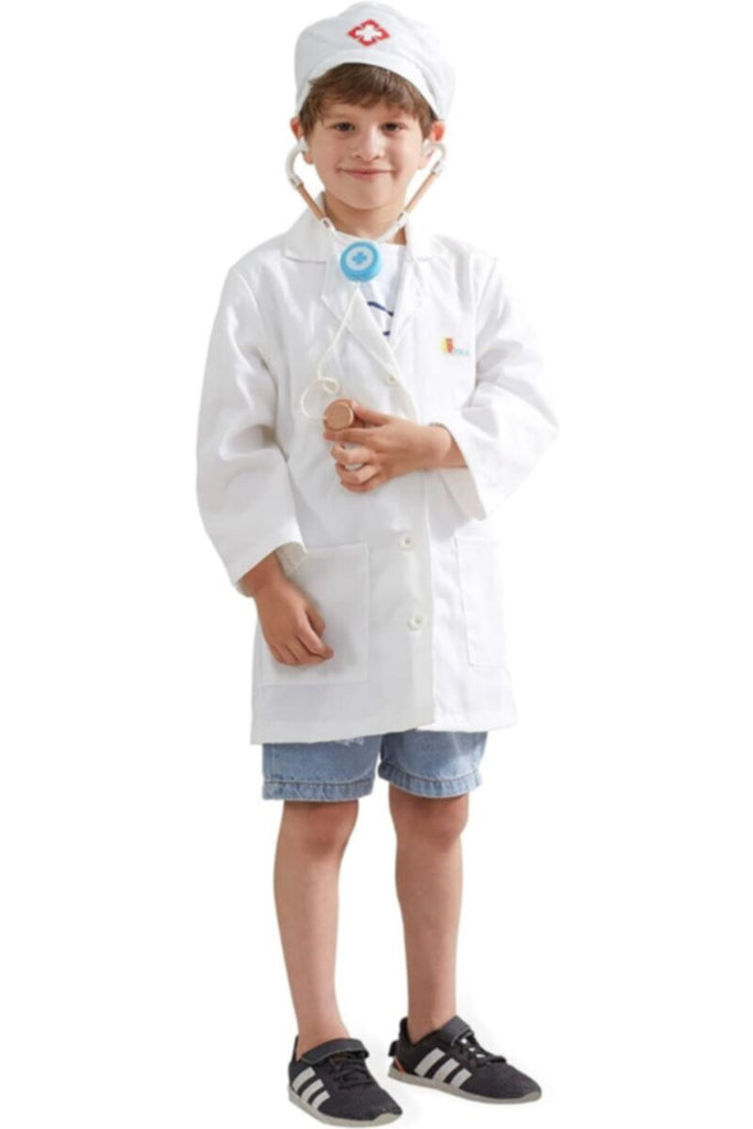 Viga Little Doctor Uniform and Hat Apron is made of resistant and washable fabric. The set is ideal for enriching the symbolic play of the little ones and pretending to doctor or as a carnival costume. The apron can also be used to protect clothes from splashes of color during painting workshops. The central pocket allows you to store any accessor. Thanks to the Velcro fastening, the hat adapts perfectly to the sizes of all children.