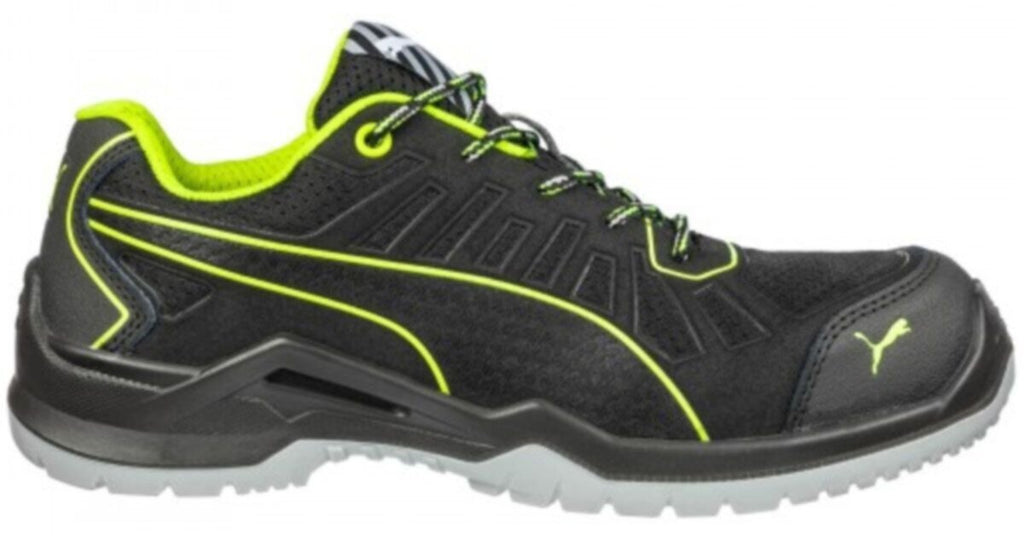 The metal free FUSE TC GREEN LOW of the TECHNICS LINE Linie by PUMA SAFETY is characterized by high flexibility and noticeable light construction. This is achieved by the naturalFLEXMOTION® sole architecture. It combines the "Natural Running" concept with the newest safety shoe technology. The shaft of the S1P safety shoe with ESD characterictics has been produced with support of the FUSE.TEC® technology. Hereby, reinforcing elements are welded seamlessly on the basis textile material. Thus, strongly-demanded areas like flex zones do not need seams at all. The shoe becomes more flexible, more durable and has a perfect fit. The inserted evercushion® BA footbed made of foam with open pores takes liquid away from the foot and provides together with the breathable BreathActive functional lining a comfortable foot climate during the whole day. The especially developed wafer profil guarantees hereby the best possible grip, in particular on smooth industry floors. • Natural Flex Motion™ • Icell • Evercushion ® BA + • Fuse. Tec • Fiber glass cap • Upper material |