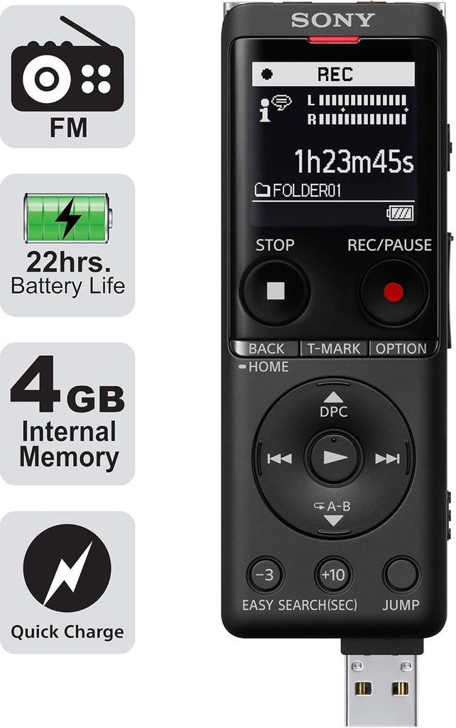 SONY | Digital Voice Recorder With High Sensitivity Memory 4GB 48 g Black | ICD-UX570F
