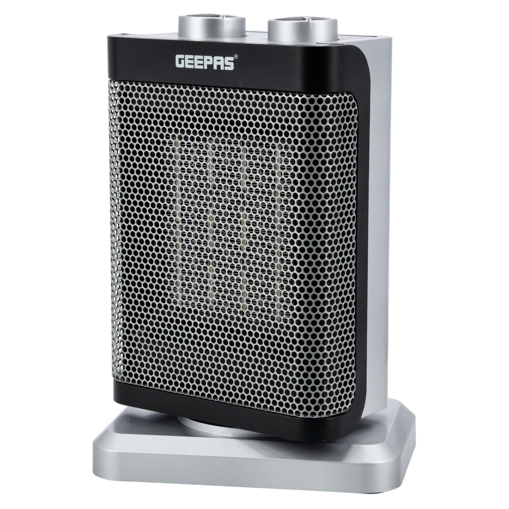 Geepas PTC Fan Heater, powered by an energy efficient ceramic heating element this space heater has 2 settings, high heat(1500W) and low heat(1000W), plus a fan only option to quickly eliminate cold spots in your desk, office, room, and home. The advanced PTC ceramic heating technology combined with the ultra efficient fan will heat up any space faster and distribute the heat more evenly. Just turn on your portable heater, you would enjoy the warmth in the home, office, desktop, and indoor. This 1500W ceramic heater comes with a built in thermostat & with tip over protection and automatic overheat protection takes the worry out of using the electric heater for long periods. Be attention to: when it turns off, the PTC will stop heating immediately, wait for 15 seconds for PTC to cool down while the fan still blows air before completely stopping. Please don't let children play with heaters by themselves. Thanks to the heater's compact size you can easily move the heater from the kitchen, to the bedroom, or under the desk. This small space heater could be for your home, office, desktop, and indoor use.