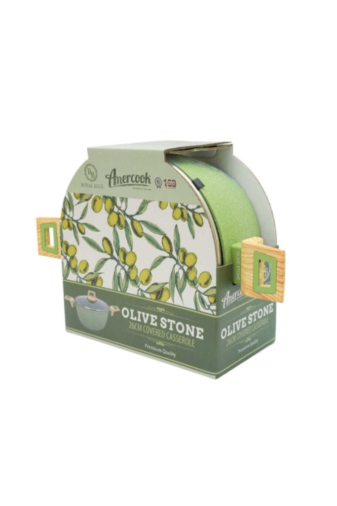 â—† Amercook Olive Stone Casserole With Glass Lid 28Cm