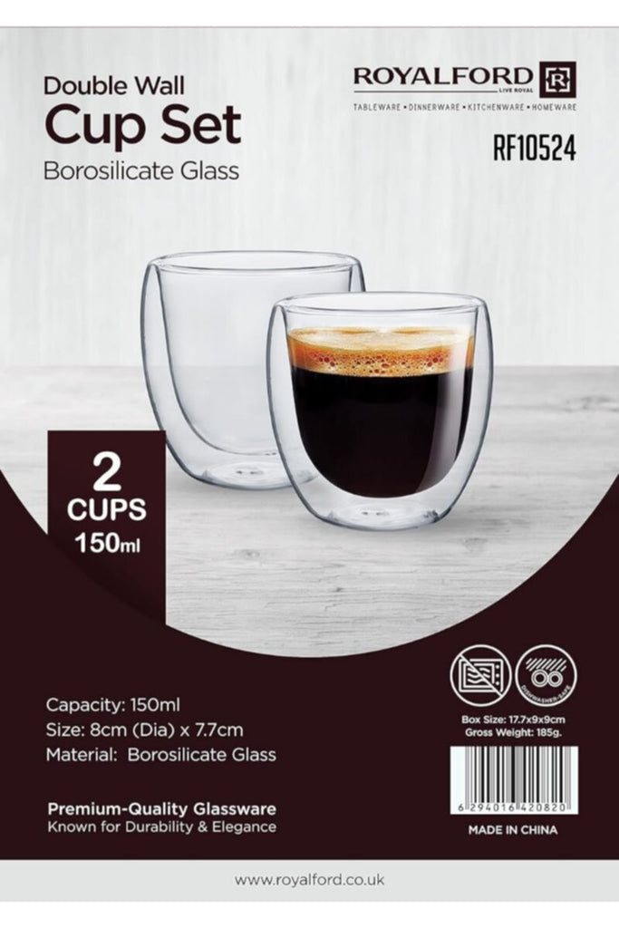 This BRS 2pc Double Wall Cup Set unfamiliar with borosilicate glass will be surprised by the weight, but rest assure it's genuine. The double walled design makes these cups less fragile, It would take a hard fall to break them. They have a solid feel and will hold up as well as any other lightweight dish or glass.