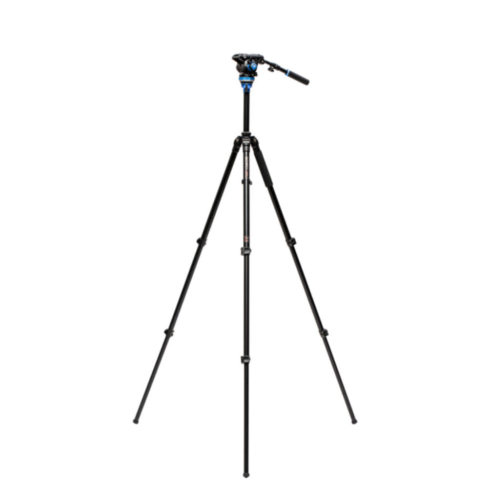 The A2573F Aluminum Single Tube Tripod with S6Pro Fluid Video Head from Benro is a versatile system supporting up to 13.2 lb loads. It has a compact design with single-tube legs, and it features a 65mm flat base that allows moving the head from the tripod directly to sliders, jibs, and other support gear.