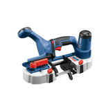 The Bosch GCB18V 2N 18V Compact Band Saw is designed to make pro cuts in tight spaces, corners and overhead, weighing only 7.3 Lbs. (tool only, not including battery). The saw is up to 60% lighter and 40% more compact than standard deep cut band saws. It has a cut rate of 530 surface feet per minute. It accommodates most common size materials, with cuts up to 2 1/2 In. on a single pass, delivering precise cuts to a variety of metal materials " including conduit, uni strut, threaded rod, and copper and black pipe.