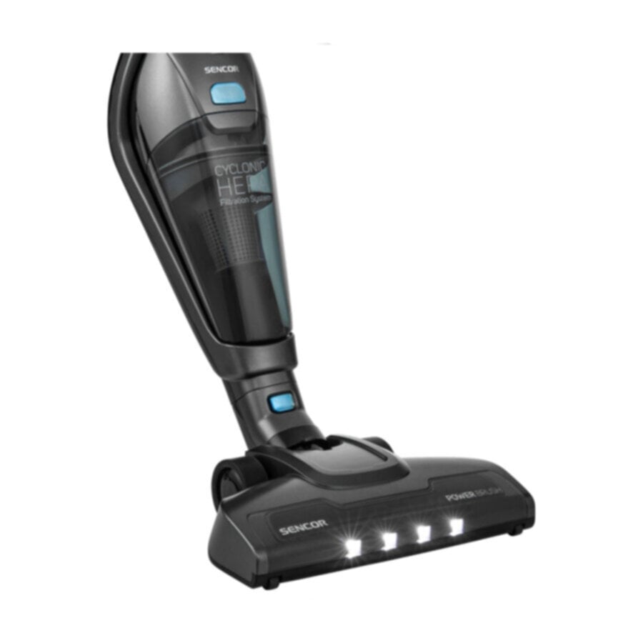 HEPA cyclone filtration system. A rotary brush with an independent motor ensures outstanding results on any type of floor and improves the vacuuming of dirt from carpets. Nozzle with LED lighting easily exposes even the finest dust and simplifies vacuuming of darker places. Self standing function for temporary placement and comfortable storage. The charging base for practical vacuum cleaner storage is equipped with an integrated accessory holder. Excellent control and easy maneuverability around furniture thanks to a 180 radius swivel vacuum nozzle and the low weight of the vacuum cleaner.