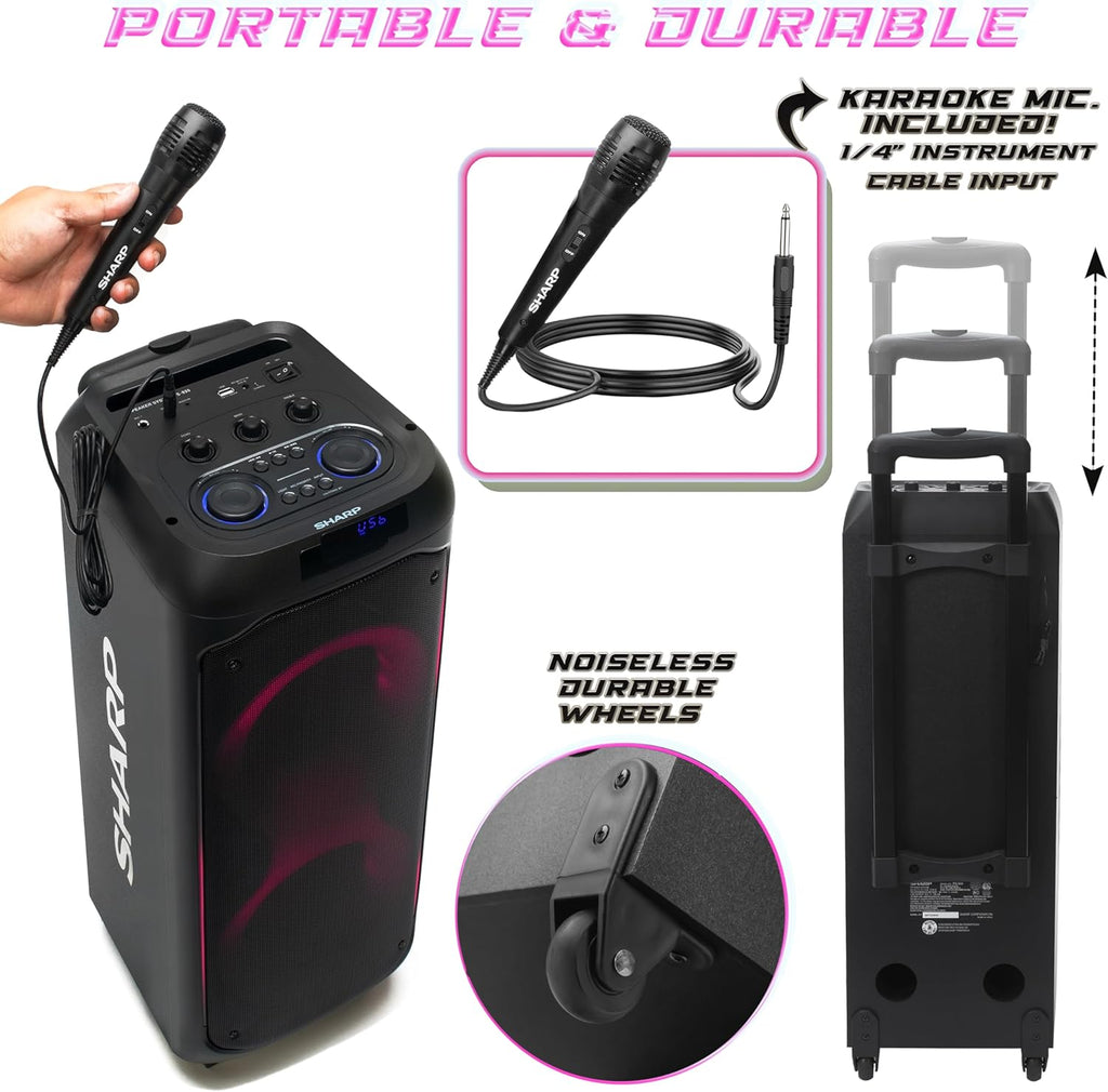 The Sharp PS 935 Portable Party & Karaoke Speaker is a versatile and powerful audio system designed to elevate your gatherings with immersive sound and dynamic lighting. Whether you're hosting a backyard party, karaoke night, or outdoor event, this speaker delivers robust performance and user friendly features.
