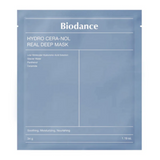 Experience intense hydration and skin barrier strengthening with Biodance's Hydro Cera Nol Real Deep Mask. This advanced sheet mask is infused with Biodance's patented Hydro Cera Nol, designed to soothe the skin and fortify its natural barrier. The mask also contains 50,000PPM of high purity glacial water, rich in minerals, to enhance the absorption of active ingredients and lock in moisture, leaving your skin feeling deeply hydrated and nourished. The ampoule is solidified into the form of a hydrogel mask, which turns transparent after 3 hours, signaling the absorption of active ingredients for maximum skin benefits. Free from allergens and 19 other harsh ingredients, this mask is safe for sensitive skin, delivering long lasting hydration and nourishment with each use.
