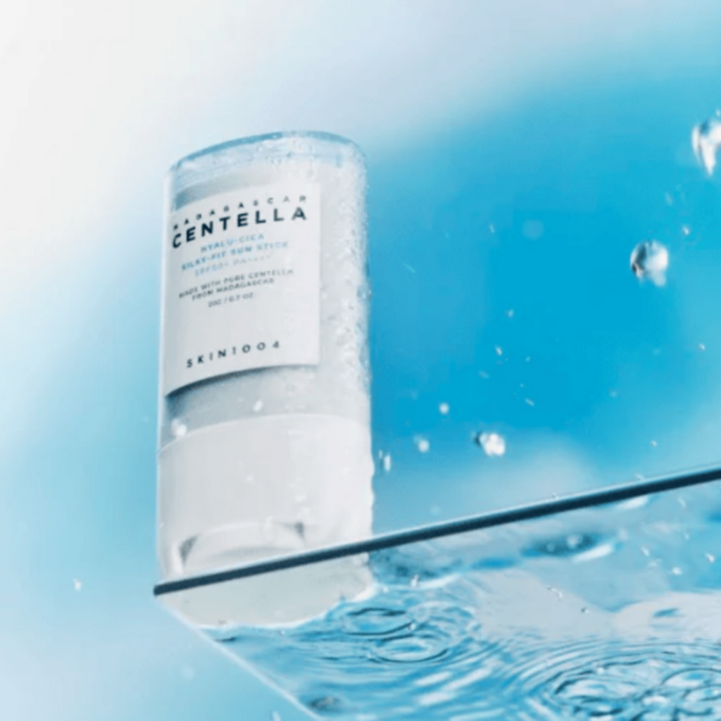 Hyalu Cica Silky Fit Sun Stick: Soft bar that smoothly spreads and moisturizes skin, and it turns into a porcelain like, breathable finish without whitecast. Blue color is derived from Chia Seed Extract.