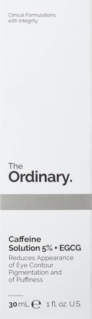 Caffeine Solution 5% + EGCG is a water based serum that reduces the look of puffiness and dark circles in the eye contour. The formula works by combining a high concentration of caffeine with a highly purified epigallocatechin gallatyl glucoside (EGCG). In your regimen Prep Step 2: Treat Seal Use after cleansing, before water based serums, anhydrous serums, oils, suspensions or creams.