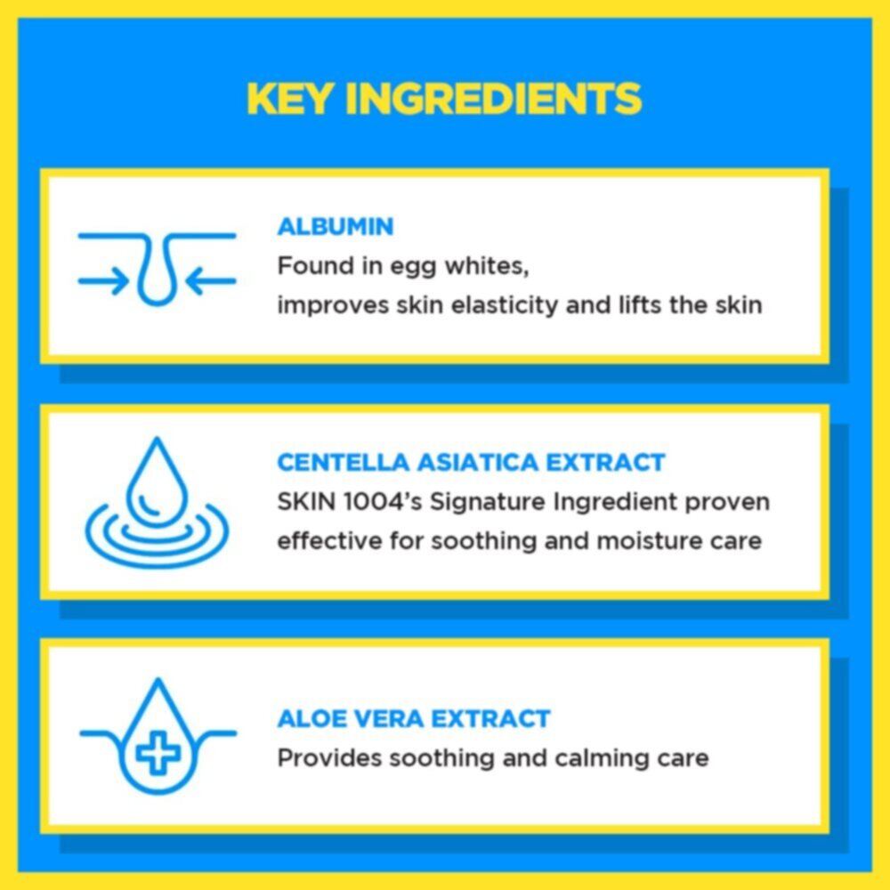• ALBUMIN & ALOE VERA EXTRACT sinks deep into skin, offering intense hydration and an instant lifting effect. Other natural ingredients include allantoin, lavender oil, centella asiatica, sea buckthorn extract, birch extract, adenosine, and rose of jericho extract