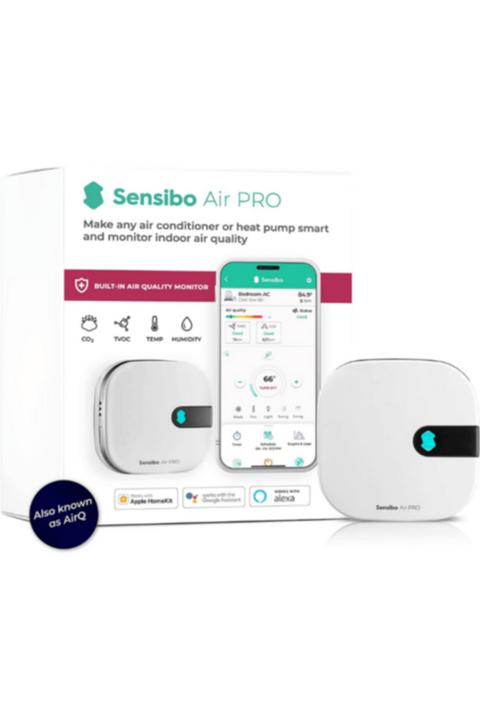 • SMART AC CONTROL WITH AIR QUALITY SENSOR " The Sensibo AirQ is a smart AC controller with a built in air quality sensor, designed to maintain an ideal temperature while continuously monitoring your air quality. Turn your existing home cooling or heating system into a smart connected device in just minutes.