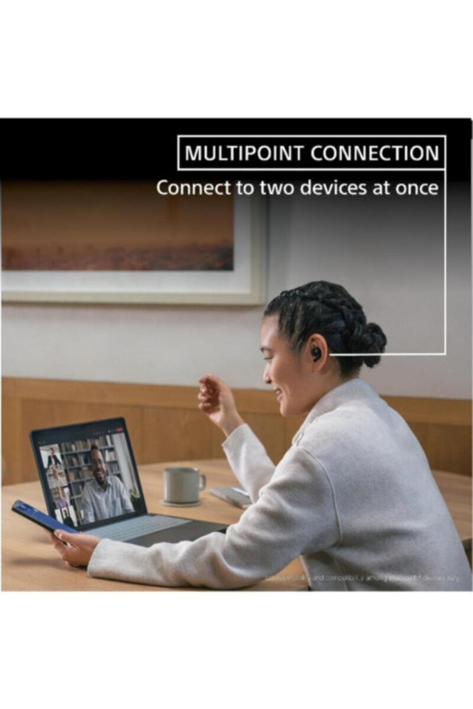 For total convenience, the WF-1000XM5 can be paired with two Bluetooth devices simultaneously so, when a call comes in, your headphones can automatically connect to the right one. With the multipoint connection you can quickly switch to a ringing device, then back by simply resuming playback on the other device.