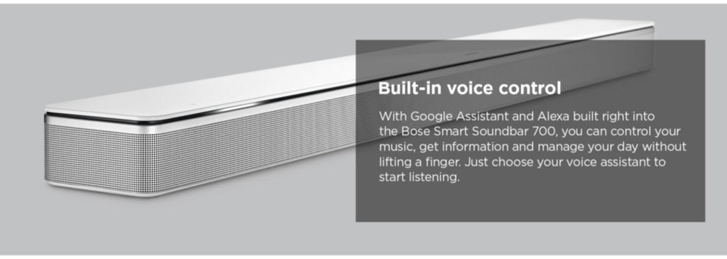 Lately, you might find yourself spending more time streaming shows or movies. So, let" s turn your everyday living room into a home cinema. The Bose Soundbar 700 provides the most premium sound from Bose and has Amazon Alexa and the Google Assistant built in.
