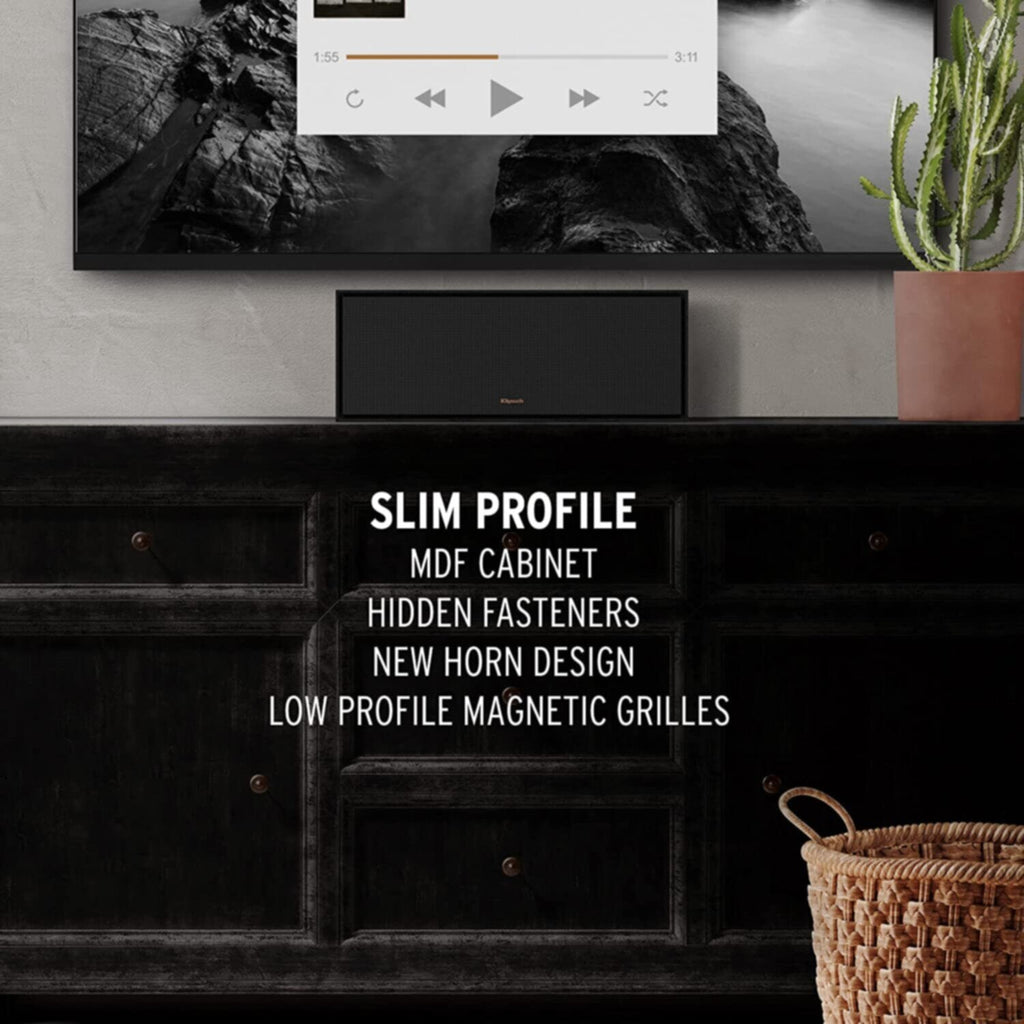 KLIPSCH | Center Channel Speaker Black Textured Wood Grain Vinyl Single | R-50C