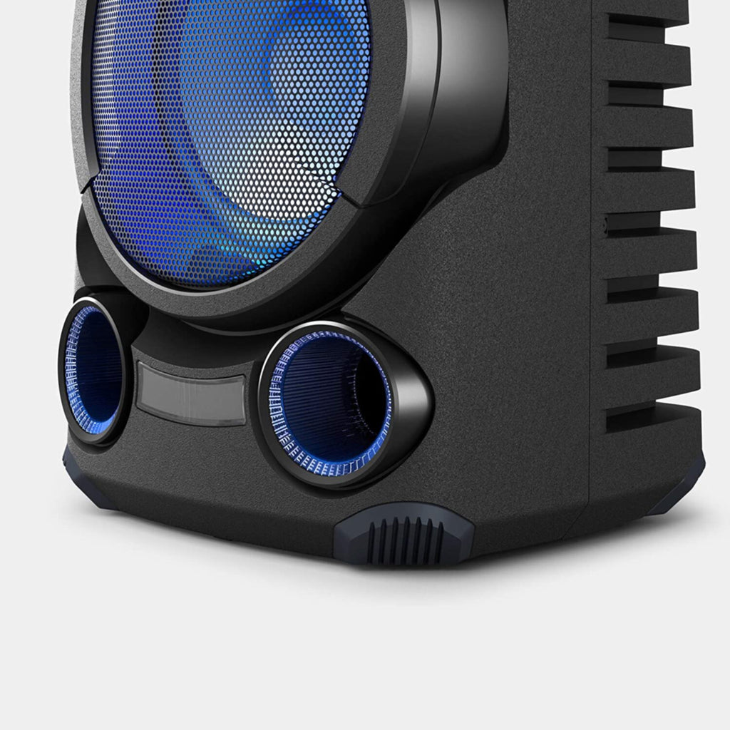 • Host parties like never before. • Bring your dancefloor to life with epic sound. • Two High Efficiency Tweeters fill your venue with sound. • Better vocals with High efficiency Midrange. • Feel the beat at long distances with JET BASS BOOSTER. • Light up the night. Unleash your inner pop star. • Vertical and horizontal Gesture Control. • Movies and TV, now with added drama . • Expand the party atmosphere with a wireless connection. • Designed to withstand the party atmosphere. |