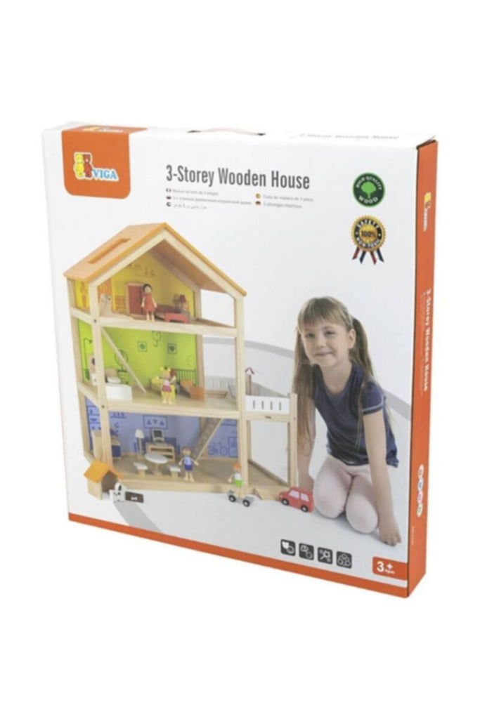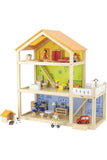 The large dollhouse is home to the cutest doll family – daddy, mummy and their two beautiful children. The children can furnish the house with beautiful wooden furniture and imitate everyday situations like in their own home. They can put the kids to bed, walk the dog, drive the car and take a bath. The house is filled with fun activities that promote role playing.