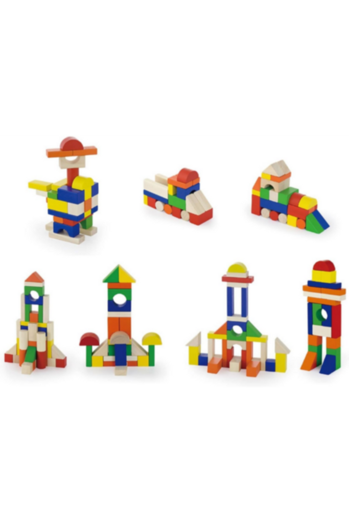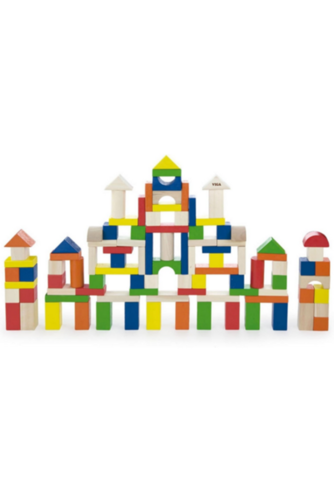 â—† Help your children to unleash their creative side with this 100 piece Wooden Block Set from VIGA. The different shaped blocks can be placed together to build whatever your child imagines, improving their knowledge of shapes, colours and sizes as they do.