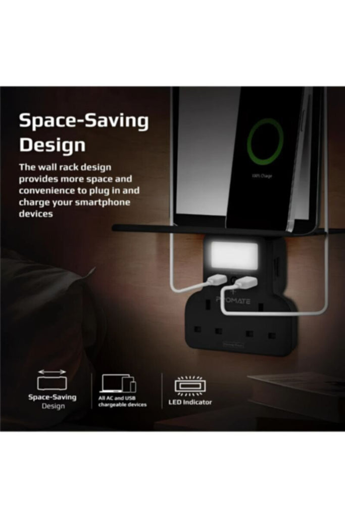• Revolutionary 5 in 1 Wall Mount Charging Station: Make your life more convenient by charging all your electronic devices with a 5 in 1 charging station featuring 2 AC Outlets with 3250W of power and dual 2.4A USB charging ports and a space saving removable shelf to keep all your items like smartphones, electronic toothbrush, iPad, speakers, and others safely at one place while charging. Powerful 3250W Dual AC Outlets: Enjoy providing optimal charging to any of your electrical devices like hairdryers, curlers, shavers without sacrificing an outlet to fit a larger plug as Promate PowerRack comes with widely spaced dual AC Outlets with Incredible 3250W of Power.