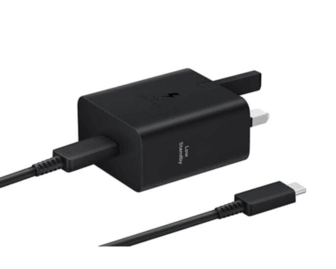 ◆ Features & Specifications: Compatibility Compatible Models • Super Fast Charging : Galaxy S10 5G, Galaxy Note10, Galaxy Z Fold2, Galaxy Z Flip3 & Later / Galaxy A90 5G, A80, A70, A52, A33, A23, A05, A15 & Later / Galaxy M31s, M51, M62, M23, M53, M14 & Later / Galaxy Tab S7 & Later • Super Fast Charging 2.0 : Galaxy Note 10+, Galaxy S20 Ultra, Galaxy S22+, Galaxy S22 Ultra, Galaxy S23+, Galaxy S23 Ultra, Galaxy S24+, Galaxy S24 Ultra / Galaxy Tab S7 & Later General Feature Features Super Fast Charging 2.0 max. 45W, PD 3.0 PDO/PPS max. 45W, Low Standby Power Consumption( <5mW ) Interface USB-C Packaging Contents Power Adapter, USB-C to USB-C 5A Cable Physical specification Cable Length (m) 1.8‎ Dimension (WxHxD) 48 x 75.6 x 28 mm Weight 100.1 g Power Input Voltage 100-240 V Output Voltage (Max, Normal Charge) 5 V Output Voltage (Max, Fast Charge) PDO : 9 V, 15 V, 20 V / PPS : 5.0-20.0 V