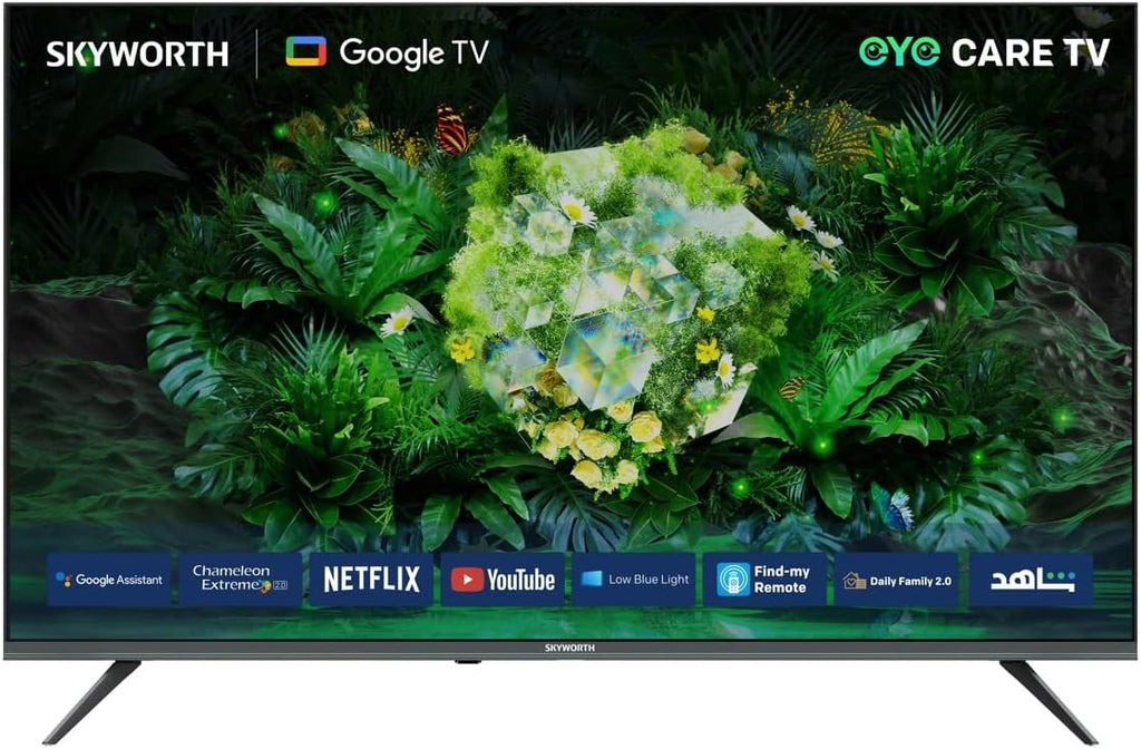 The Skyworth 85G6500G is an 85 inch 4K UHD Smart Google TV designed to deliver an immersive viewing experience with stunning visuals and powerful sound. Powered by Google TV, it offers seamless access to a wide range of streaming platforms and applications. The Chameleon Extreme 2.0 processor enhances picture quality, providing vibrant colors and sharp details. With HDR10 support, the TV delivers improved contrast and color accuracy. The Eye Care 2.0 feature reduces blue light emission, making it ideal for prolonged viewing. The TV also supports Game Mode for low latency gaming, ensuring smooth gameplay. Equipped with DTS Studio Sound, it produces immersive audio that complements the high quality visuals.