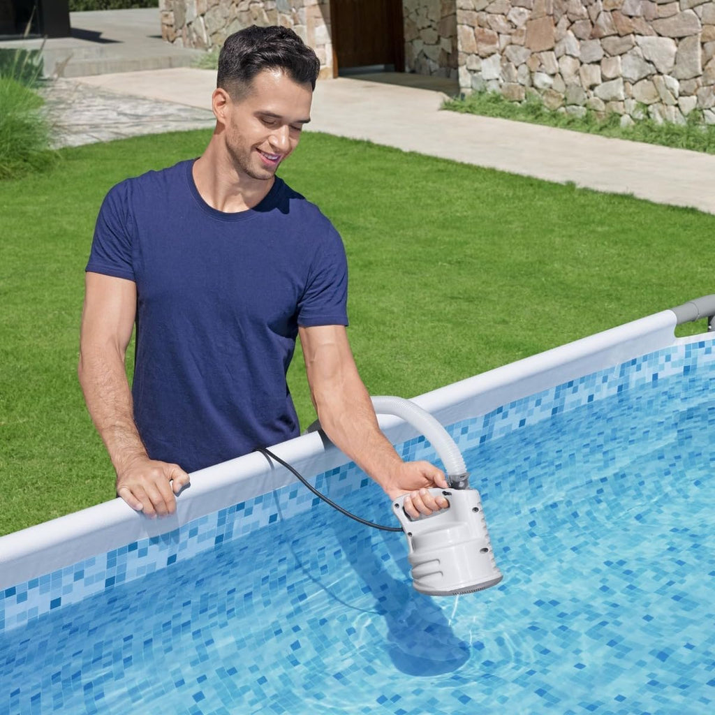 Quickly and efficiently drain your Lay" Z" Spa or pool with the Bestway 800 Gal Water Drain Pump. Capable of removing up to 3,028 liters (800 gallons) per hour, this powerful pump is perfect for fast water changes or preparing your pool for storage.Just plug it into a power outlet, submerge the pump, and let it go to work. The included 5 meter hose lets you direct the water exactly where you need it. Built from durable, corrosion resistant materials, this pump is made to last season after season.