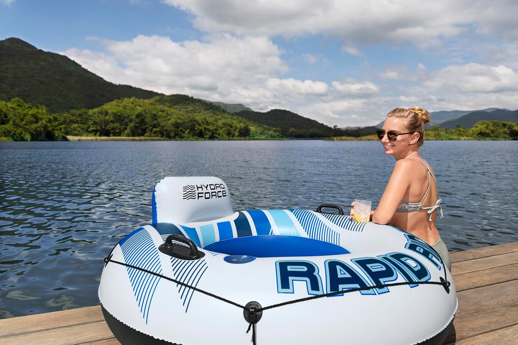 Unwind in the water with the Bestway Inflatable Lounge Swim Ring, the perfect choice for solo relaxation in the pool, lake, or sea. Designed for comfort and functionality, this float doubles as a floating chair, letting you recline and drift peacefully under the sun.Featuring an inflatable headrest for added neck support, two built in cup holders to keep your drinks within reach, and two sturdy handles for stability, this lounge is made for ultimate convenience. The mesh bottom keeps you cool while lounging, and the durable PVC construction ensures long lasting use.