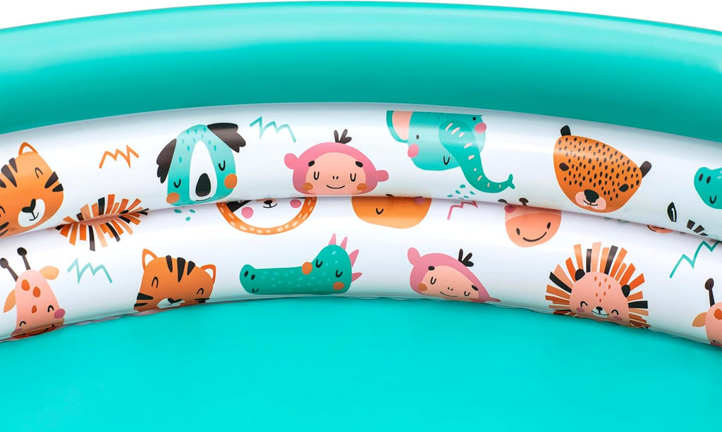 • Get ready for splash time with your favourite, adorable creatures in the Bestway Safari Pals Kiddie Pool! Featuring 3 equal rings and a cute animal design, this kiddie pool offers major fun for kids 2+ who love splashing around all day!