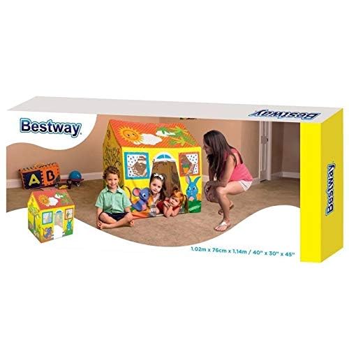 Welcome to the Bestway Purrfect Pets Playhouse, where imagination and play come to life! Designed for kids aged 2 and up, this vibrant pet shop themed playhouse invites your child and their favorite stuffed animals into a world of creative fun. Featuring a colorful pet store print, a retractable door, and two transparent windows for easy parent supervision, this playhouse is perfect for indoor or outdoor adventures. The easy snap together PVC frame allows for quick, tool free setup, giving kids their very own space to play, learn, and grow.