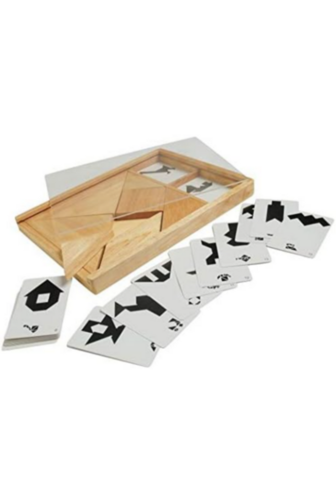 â—† Our version of Tangram comes in a lovely wooden box with a sliding perspex lid. Tangram comes with 27 cards printed on both sides so there are 54 suggestions.